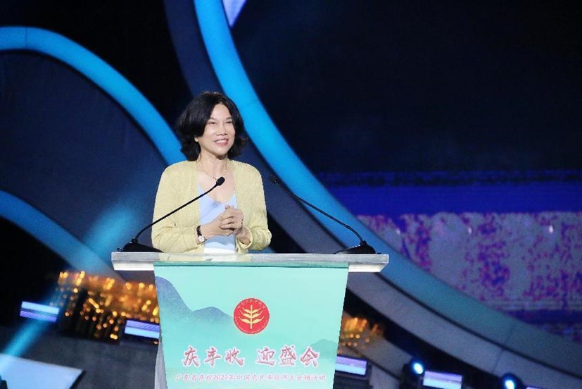(圖為董明珠在廣東省慶祝2022年“中國農民豐收節”活動上發言)