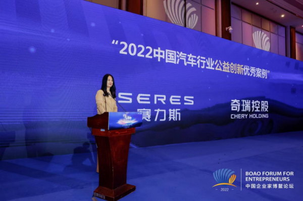 意揚傳播集團董事長楊娜發布“2022中國汽車行業公益創新優秀案例”,奇瑞集團、賽力斯汽車入選。