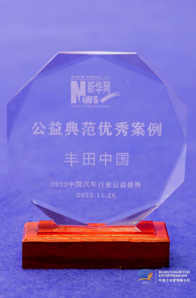 11月25日-11月28日,“2022中國企業家博鰲論壇”在海南博鰲舉辦。論壇期間,豐田汽車(中國)投資有限公司(簡稱:豐田中國)在“2022中國汽車行業公益盛典”上,入選“2022年度汽車行業公益典范優秀案例”。