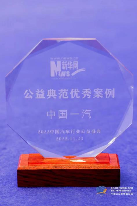 11月25日-11月28日,“2022中國企業家博鰲論壇”在海南博鰲舉辦。論壇期間,中國第一汽車集團有限公司(以下簡稱中國一汽)在“2022中國汽車行業公益盛典”上,入選“2022年度汽車行業公益典范優秀案例”。