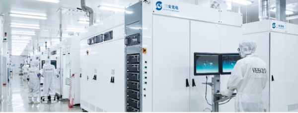 三安光電從事化合物半導體新材料、外延、芯片與器件的研發、生產和銷售,擁有3000多項專利,是國家認定的博士后科研工作站及國家級企業技術中心,承擔國家“863”、“973”計劃等多項重大課題,曾獲得國家科學技術進步獎一等獎。圖為三安光電外延片生產車間。