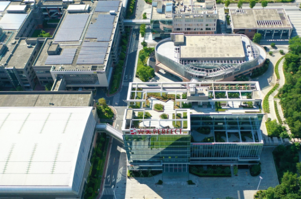 完美(中國)有限公司踐行“雙碳”戰略,堅持綠色發展。完美華南基地在建設規劃時就秉承“生態建筑”理念,從選址布局、節地、節水、節能、節材和環境方面按行業標準中最高級別來規劃與建設,其采用的數字化車間、先進的水處理系統、屋頂光伏發電等“減碳”方式,實現了節能減排和保護環境,讓完美工廠成為“綠色工廠”新范式。2021年,完美華南基地榮獲“2020-2021年度第二批國家優質工程獎”。圖為完美華南基地。