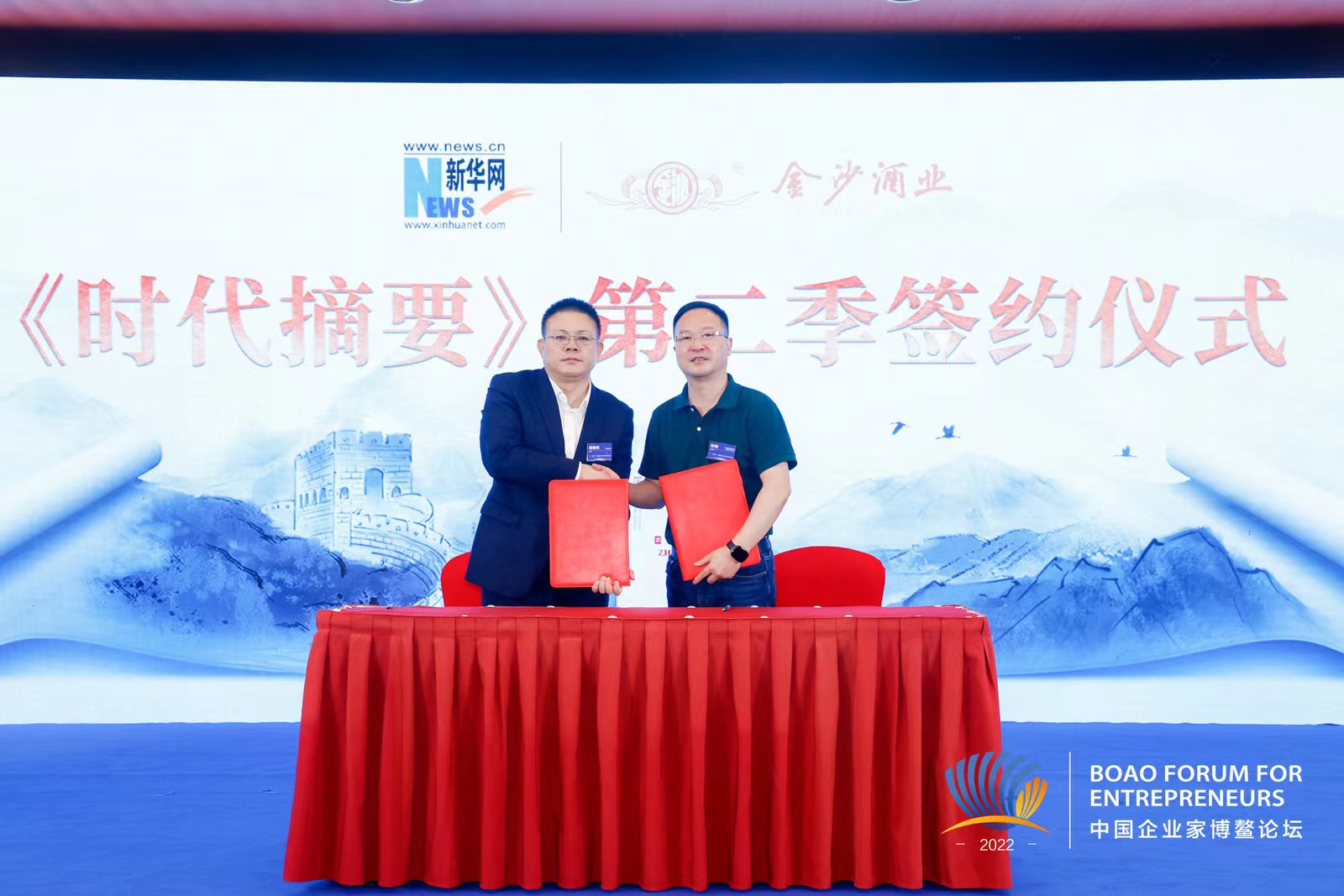 11月28日,在2022中國企業家博鰲論壇·時代摘要盛典上,新華網首席營銷官徐明偉,貴州金沙酒業黨委委員、銷售公司總經理鄭鋼代表雙方進行了《時代摘要》欄目第二季簽約?!稌r代摘要》第二季將繼續聚焦中國產業力量,尋找創新突破、穿越周期的中國企業,從它們身上挖掘不落窠臼的時代思考,折射中國經濟的韌性,發現中國經濟的脊梁。