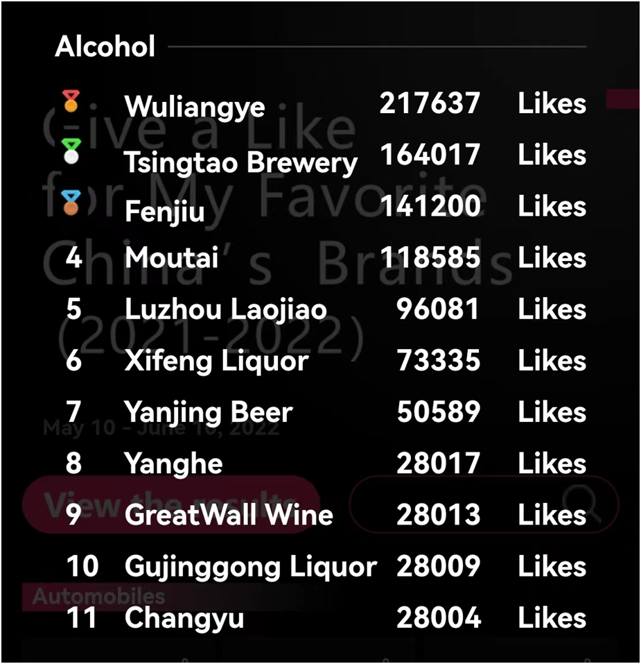 在為期1個月的網絡投票期間,海外消費者通過新華社英文版客戶端、新華絲路多語種網絡、新華網英文頻道、中國網、中經社海媒矩陣、谷歌以及德新社、泰國InfoQuest、波蘭TTG、巴西商業觀察等平臺,為其喜愛的中國品牌投票點贊,五糧液在酒類品牌中獲得最多點贊。