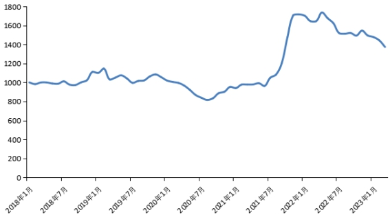 新華財經北京4月11日電(李伯罧、馬兵)3月份,新華·中鹽兩堿工業鹽價格指數報1373.85點,較上期(2023年2月)下跌69.11點,跌幅4.79%;較基期(2018年1月)上漲373.85點,漲幅37.39%;較周期內最高點1736.66點(2022年4月)下跌362.81點,跌幅20.89%;較周期內最低點816.2點(2020年8月)上漲557.65點,漲幅68.32%。