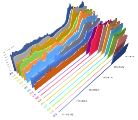 分區域來看,2023年3月,新疆兩堿工業鹽出廠價格較2023年2月上漲;云南、四川、遼寧、天津、河南、江蘇、安徽、湖南、湖北、山東、重慶、江西、河北、寧夏、陜西、青海兩堿工業鹽出廠價格較2023年2月下跌。
