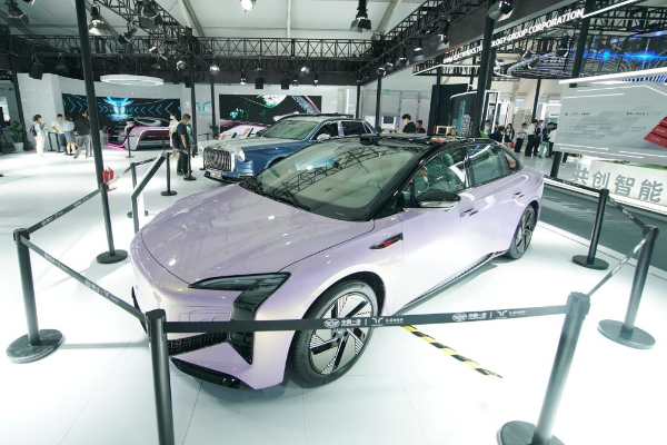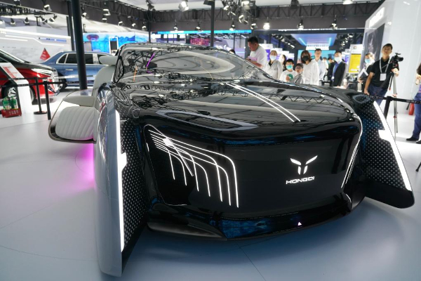 這是在長春汽博會現場展出的紅旗新能源車型。新華社記者 張楠 攝
