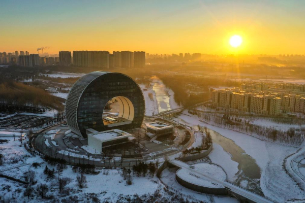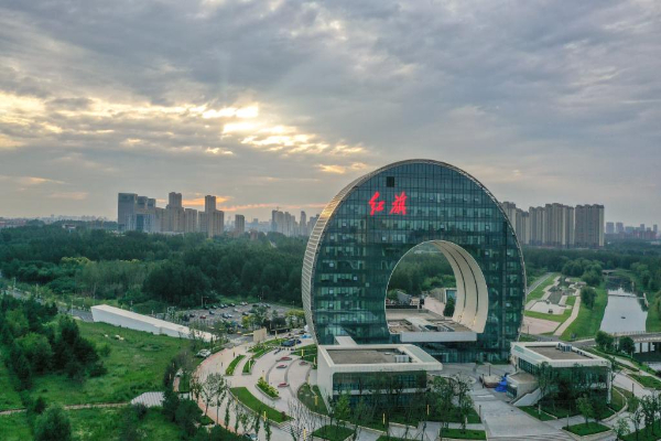 無人機拍攝的晨曦中的一汽紅旗創新大廈。新華社記者 張楠 攝