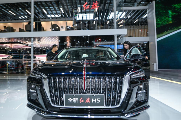 觀眾在長春汽博會紅旗品牌汽車展區參觀紅旗H5車型。新華社記者 顏麟蘊 攝