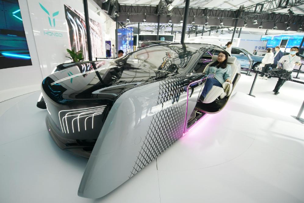 在2023中關村論壇展覽(科博會)中拍攝的紅旗智能平臺HIS。 新華社記者 張晨霖 攝