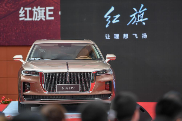 在紅旗H9車型上市發布會現場拍攝的紅旗H9車型。新華社記者 張楠 攝