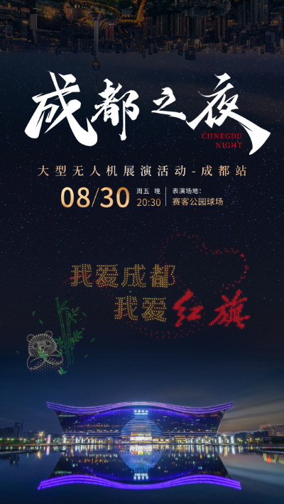 “心有大風景 成都之夜”大型無人機展演活動將于8月30日晚在成都舉行。1000架無人機即將化作絢麗燈火妝點蓉城夜空,帶來一場精彩絕倫的視覺盛宴。