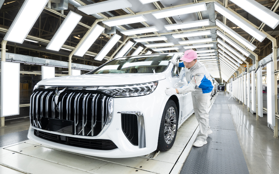 4月1日,在位于湖北武漢市經開區的嵐圖汽車數字化總裝車間,工人在流水線上作業。新華社記者 肖藝九 攝