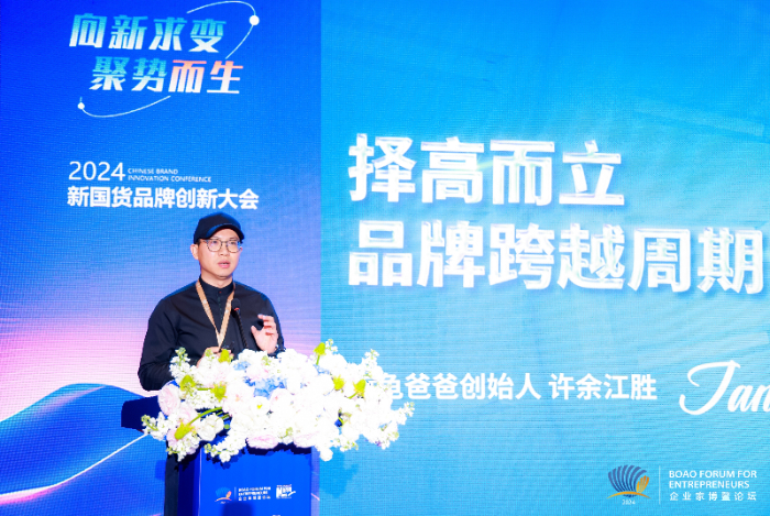 新華網博鰲12月3日電(劉夢嫣)12月2日至4日,2024企業家博鰲論壇系列活動在海南博鰲舉行。在3日舉行的2024新國貨品牌創新大會中,海龜爸爸創始人許余江勝以《擇高而立,品牌跨越周期的核心》為主題發表主旨演講。