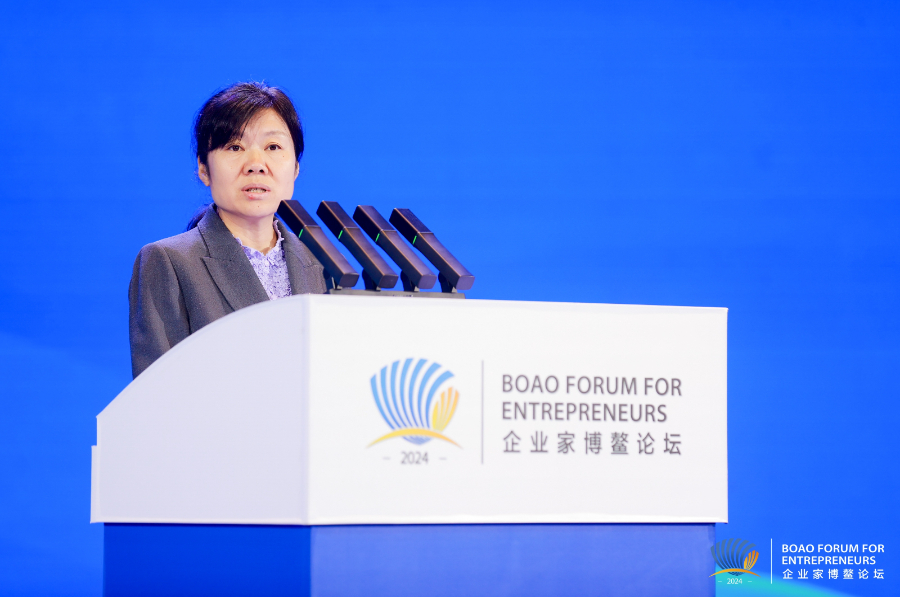 12月3日,2024企業家博鰲論壇主論壇舉行,圖為中國貴州茅臺酒廠(集團)有限責任公司黨委副書記、總經理王莉發表主題演講。新華網發