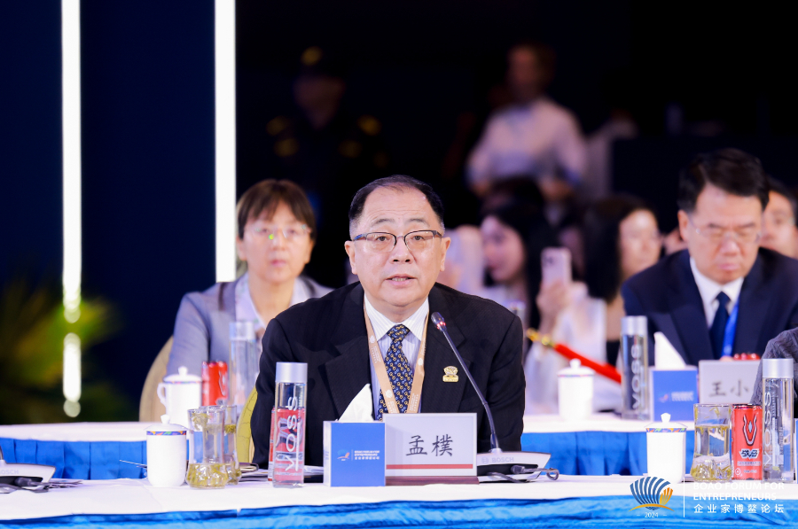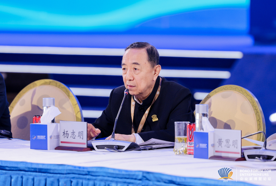 12月3日,2024企業家博鰲論壇主論壇舉行,圖為國務院參事室特約研究員中國勞動協會會長、人力資源和社會保障部原黨組副書記副部長楊志明在圓桌會議上分享觀點。新華網發