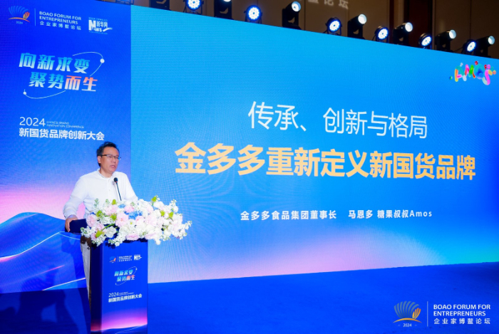 金多多食品集團董事長馬恩多發布《傳承、創新與格局——金多多重新定義新國貨品牌》主題分享,他從多個角度向大家介紹了金多多品牌的發展歷程與產業布局。他總結道:“創新是能夠助力國貨崛起的關鍵點?!?/p>