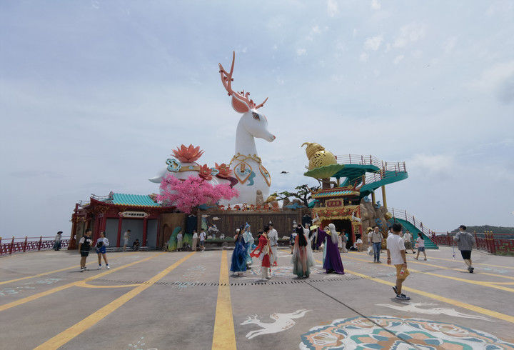 游客在“云上草原仙俠鎮”拍照