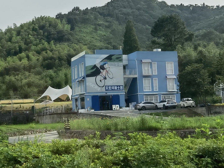 在道邊:田野中一座“藍房子”格外醒目。來自上海的都市麗人卓莉放棄高樓林立的喧囂世界,斥資在此投建具有歐式風格的藍色調樓房,專門運營一個自行車越野騎行項目?!拔襾磉@里安家,當然是看好這里的美景,還有愜意的田園生活?!彼f。