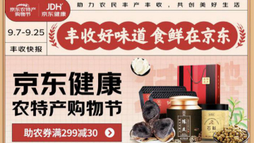 為積極響應國家舉辦“中國農民豐收節”的號召,首屆“京東農特產購物節”于9月7日開幕,首屆“京東健康農特產購物節”也于當日同步開啟。