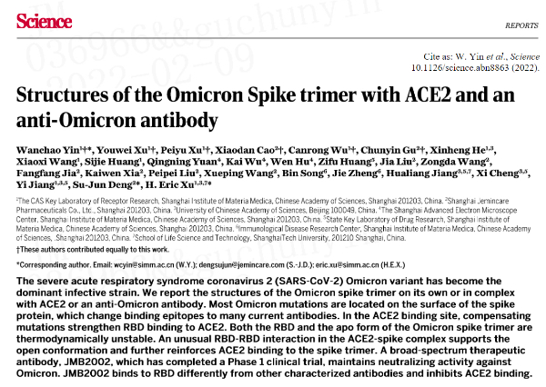 論文通過同行評審并在Science發表,將助力全球科研工作者充分了解Omicron變異株的特性,為JMB2002對新冠病毒Omicron變異株仍具有中和功能及進一步開展臨床試驗研究提供了理論基礎。
