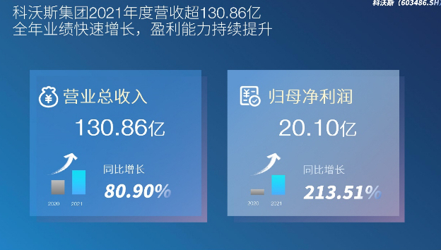 近日科沃斯發布2021年年度與2022年一季度財報。報告顯示,科沃斯2021年實現營業收入130.86億元,同比增長80.90%;歸屬于上市公司股東凈利潤20.10億元,同比大增213.51%。