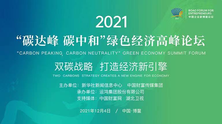 12月4日,2021中國企業家博鰲論壇·“碳達峰 碳中和”綠色經濟高峰論壇在博鰲舉行。此次論壇的主題為“‘雙碳’戰略,打造經濟新引擎”,來自國內外的產學研界嘉賓共同分析中國經濟內生動力,探討中國經濟綠色發展、高質量發展之路。論壇由新華社新聞信息中心和中國財富傳媒集團聯合主辦,運鴻集團股份有限公司承辦,中國財富網和湖北衛視做媒體支持。