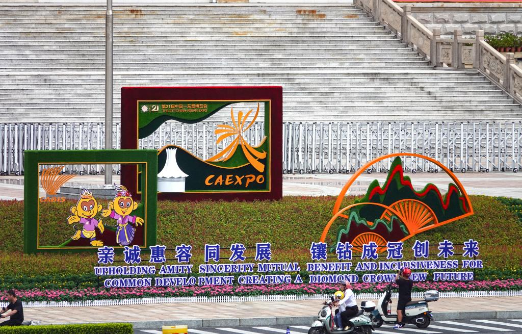 行走在南寧街頭,可見各式東博會和峰會的元素。今年的盛會以“親誠惠容同發展,鑲鉆成冠創未來”為主題,會期持續至28日,展覽規模近20萬平方米,參展企業超3000家。