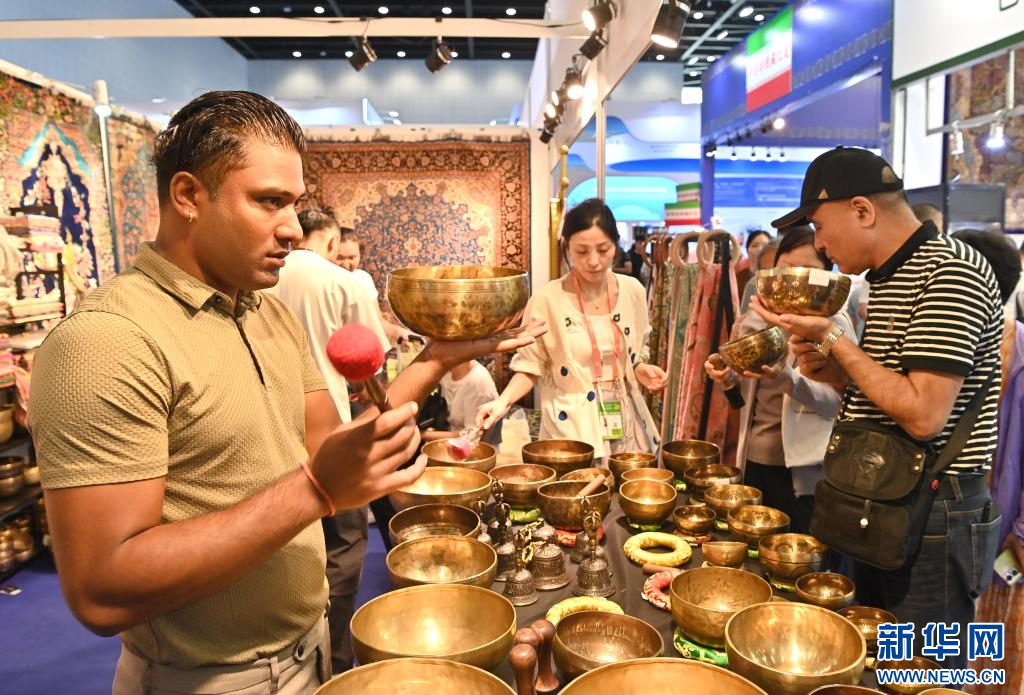 9月28日,觀眾在第21屆中國—東盟博覽會上挑選伊朗商品。