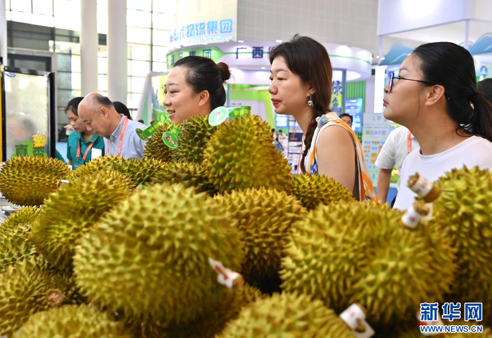 9月28日,觀眾在第21屆中國—東盟博覽會上挑選馬來西亞榴蓮。
