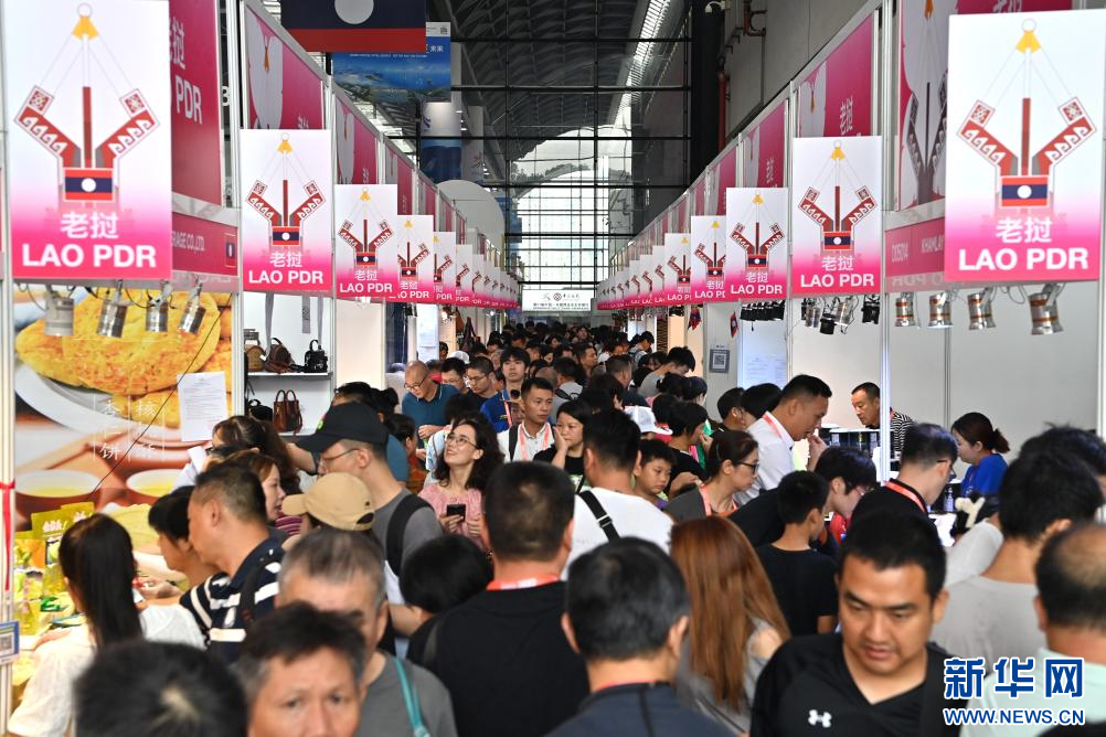 9月28日,觀眾在第21屆中國—東盟博覽會老撾商品館參觀。