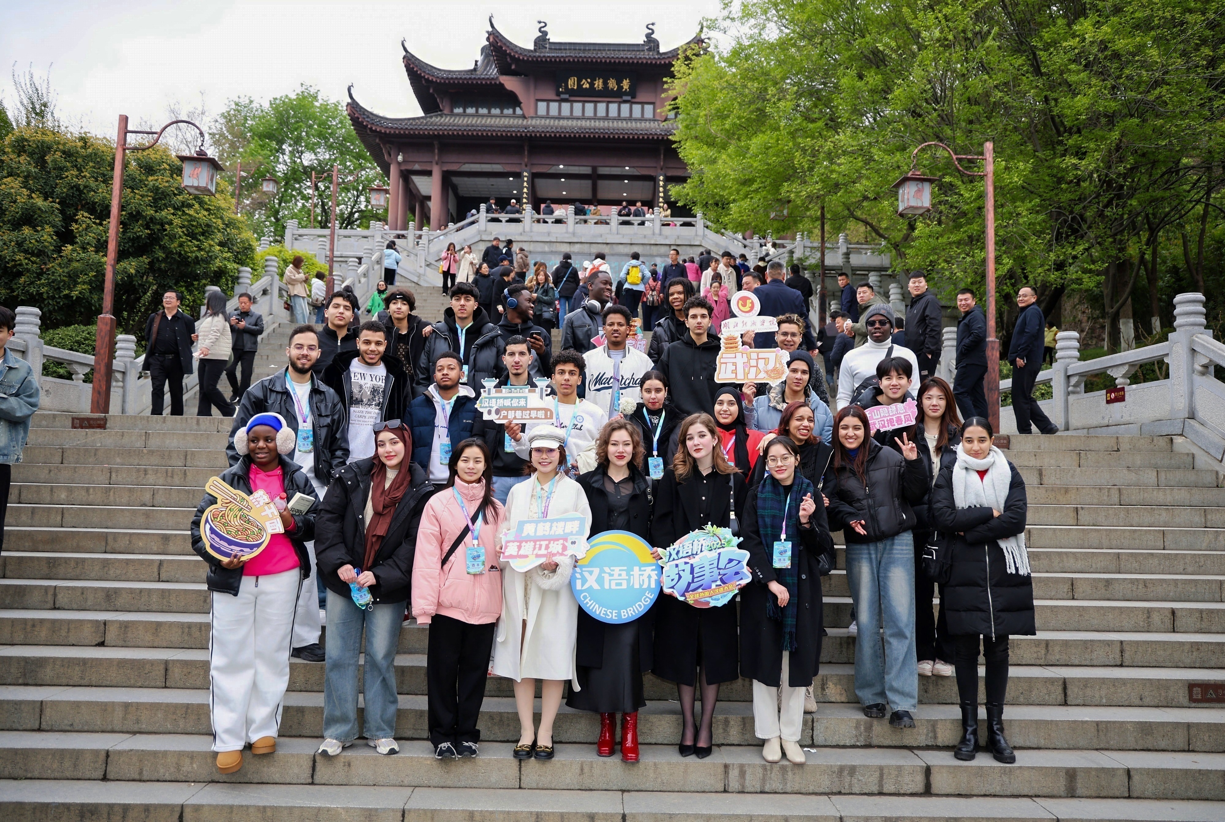 圖為參賽選手參觀黃鶴樓。 主辦方供圖