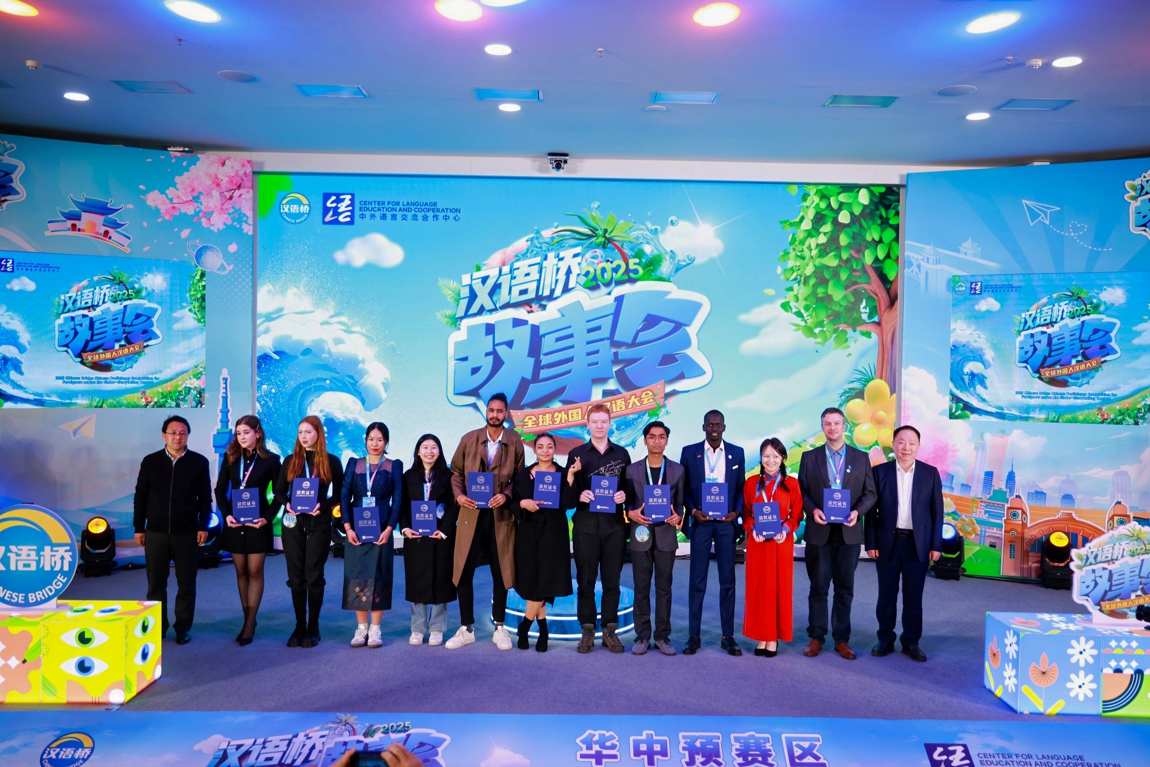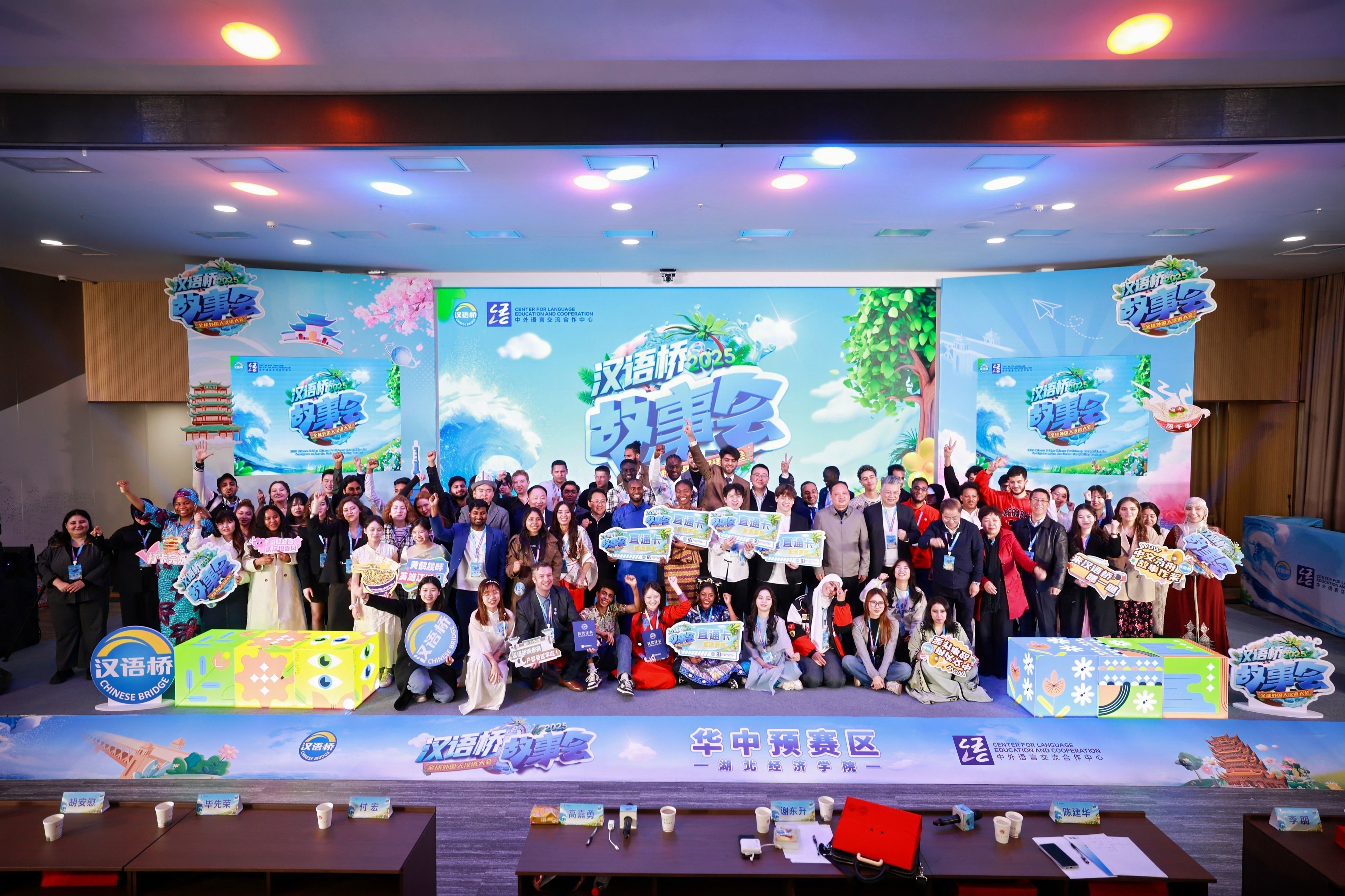 圖為2025年“漢語橋”全球外國人漢語大會故事會華中預賽區選手與嘉賓大合影。主辦方供圖