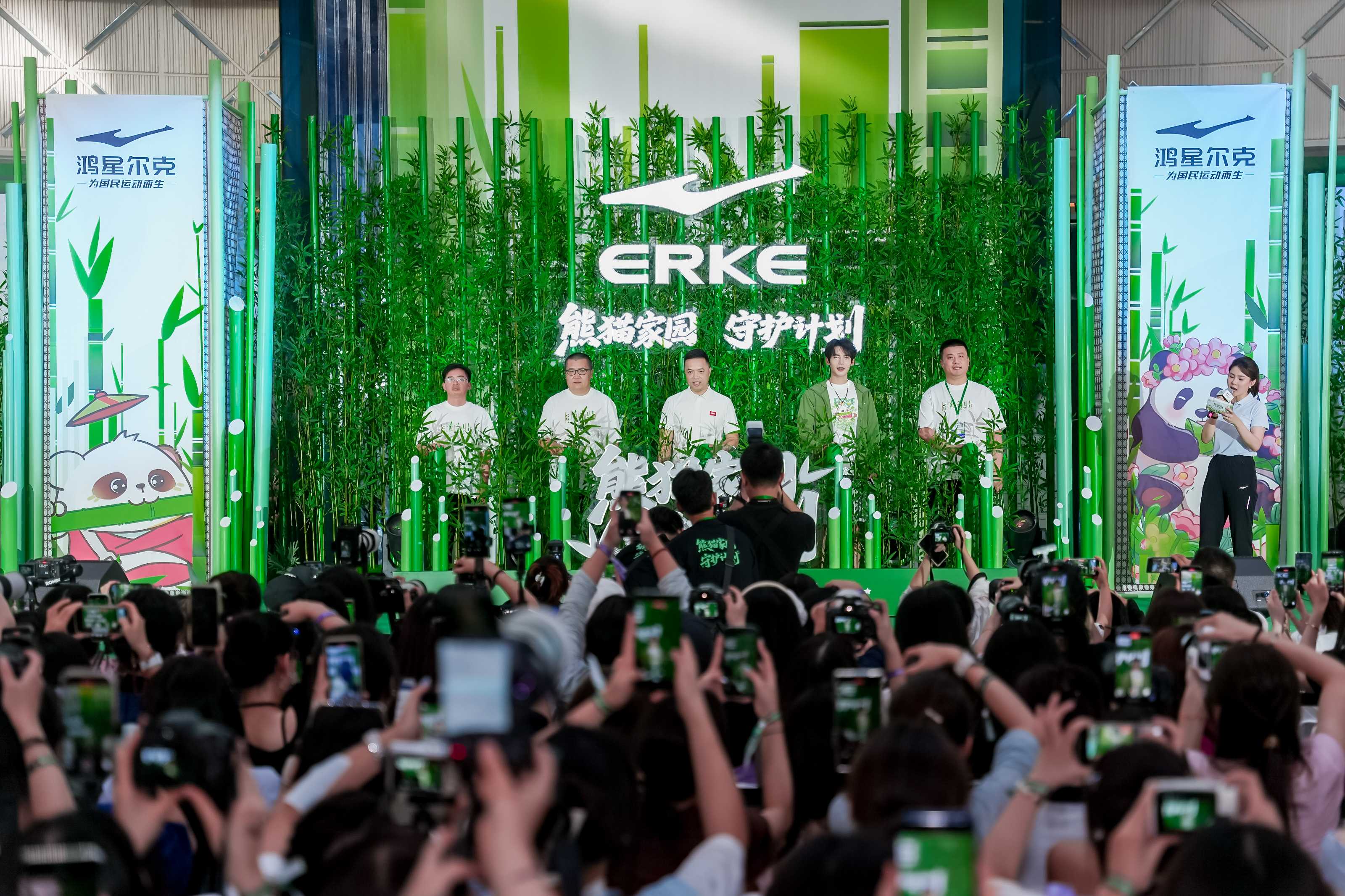 7月21日,在鴻星爾克一年一度的“鴻星爾克感恩成長日”,國民品牌鴻星爾克聯合成都市政府熊貓家園啟動“熊貓家園守護計劃”,新銳青年于適擔任“熊貓家園國際公益大使”,通過公益T及線下活動,號召更多鴻粉共同守護。