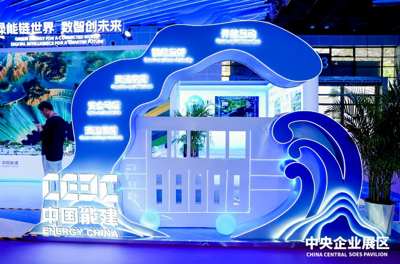 中國能建展廳以“綠能鏈世界 數智創未來”為主題,通過圖文、沙盤、視頻等手段,全方位、立體化、沉浸式展示了大型水電、清潔煤電、壓縮空氣儲能、綠色氫氨醇等國際領先技術,以及能源大數據平臺、交能融合智慧管理平臺等數字化解決方案。