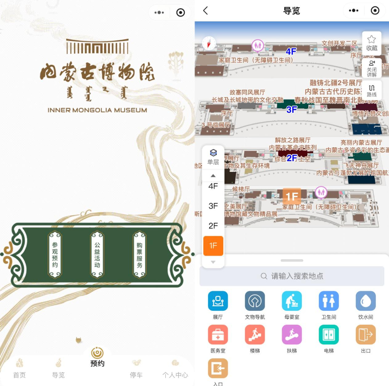 在智慧服務方面,內蒙古博物院不斷提升公共體驗的便捷度和舒適度。進入場館后,每個展廳門口都有豎屏,顯示場館實時觀眾量。當展廳人員達到承載量80%時,屏幕上會顯示,建議大家去其他展廳參觀。若想看某個文物,可以直接點擊屏幕上的路徑。