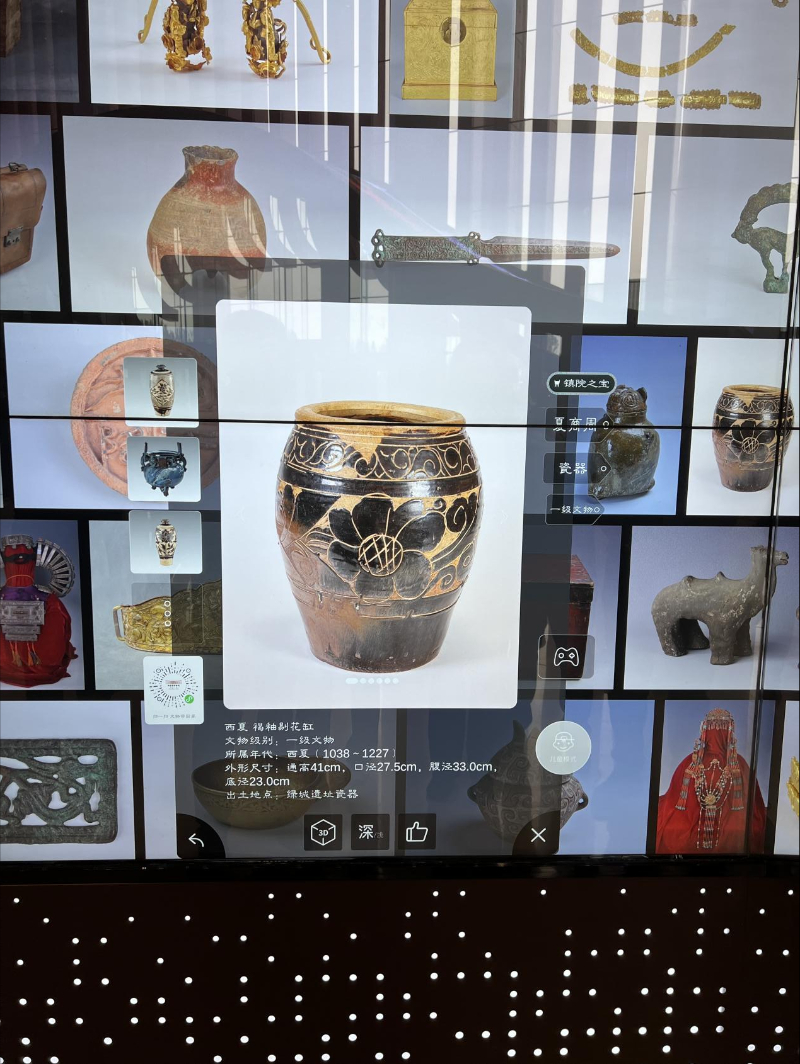 在數字化轉型過程中,內蒙古博物院在智慧保護方面開展了大量卓有成效的工作,一是實施文物預防性保護工程,完善文物保護環境監測系統;二是建設文物3D全息影像沉浸體驗;三是多元數字成果展示,開發數字化原創產品;四是建設新館數字化展廳。