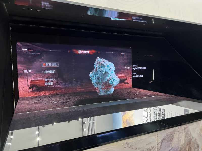 圖為包鋼科技商務交流中心,白云鄂博礦床發現的新礦物福元鈮礦全息投影。新華網 李世純 攝