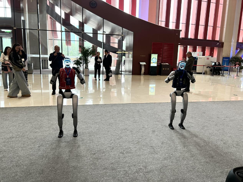 圖為內蒙古博物院智慧館員“巴特爾”和“高娃”在進行舞蹈展示。新華網 李世純 攝