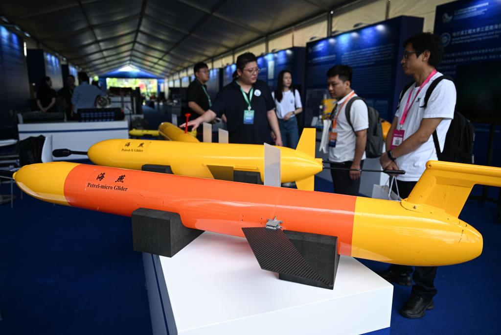 10月29日在深海先進技術及裝備成果展上拍攝的“海燕”系列水下滑翔機(模型)。