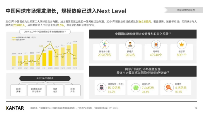 國家體育總局網球運動管理中心發布的《中國網球事業發展基礎數據》報告顯示,2024年中國網球人口達到2518余萬人,相較于2021年,增長率達28.03%。網球正在從歐美精英運動邁向集競技性、觀賞性、娛樂性于一體的全民運動。