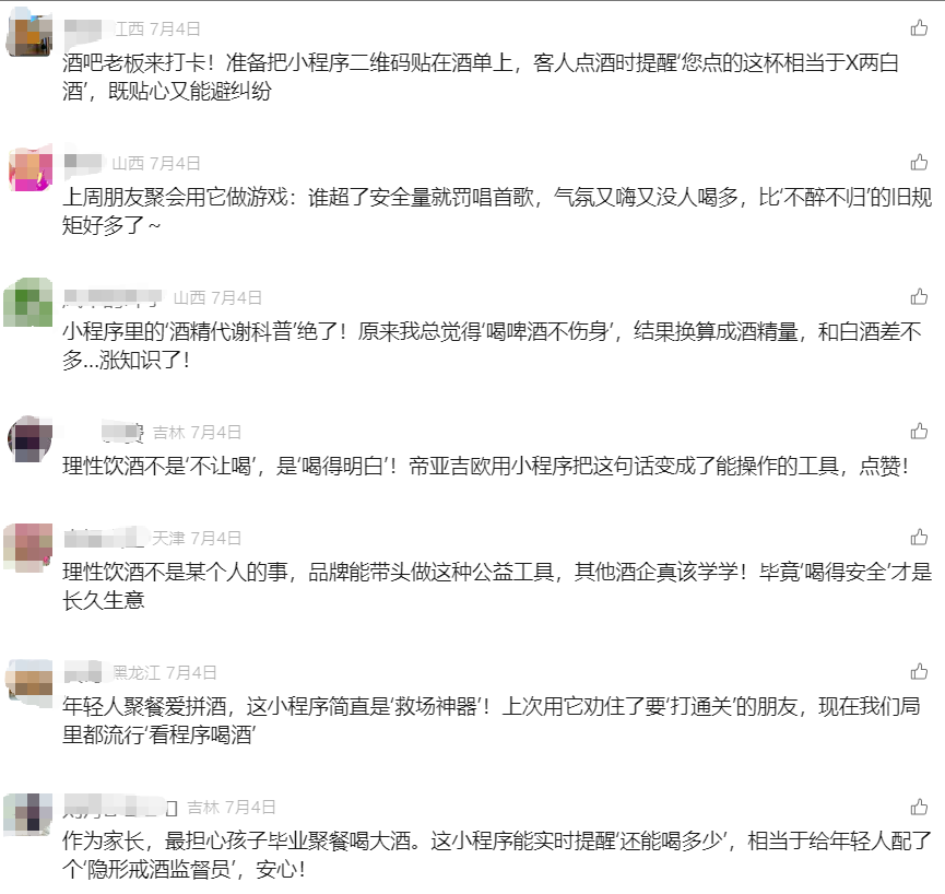 “理性飲酒不是‘不讓喝”,是‘喝得明白’”“年輕人聚餐愛拼酒,這小程序簡直是‘救場神器’!”……這款帝亞吉歐專為中國市場定制的微信小程序一經上線,便吸引了消費者的廣泛參與和熱議。