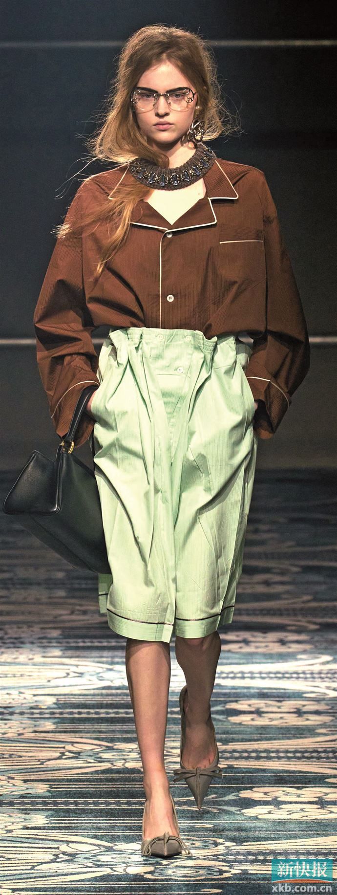 “琥珀流光”造型穿搭的另一大特質,是光感流轉躍然面料之上,在棕色系、大地色系的基調上加入或輕盈或閃亮或亮面的材質搭配,如薄紗、蕾絲這類輕盈質感的面料,營造光影浮動的浪漫效果,讓秋冬造型也因此有了更豐富的層次感。
