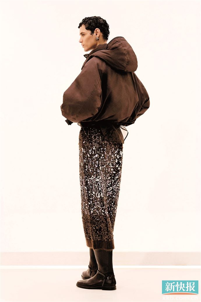 2025秋冬時尚語境中以棕色系、大地色系為主基調的穿搭持續流行,審美語言被注入新的光感交織與情緒感知,如加入淺灰藍、鵝黃色等明亮的點綴與碰撞或是注入靈動亮色的內搭及配件、配飾,抑或是閃亮面料、亮面材質的搭配,如日光打在通透琥珀上折射出流光溢彩的美好瞬間……