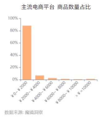 從商品供給看,電商平臺 “0~2000元” 價格帶的商品數量占比居首位,表明入門級是行業供給的 “基本盤”,既契合大眾對入門級產品的基本需求,也體現品牌以高性價比搶占市場的策略傾斜。
