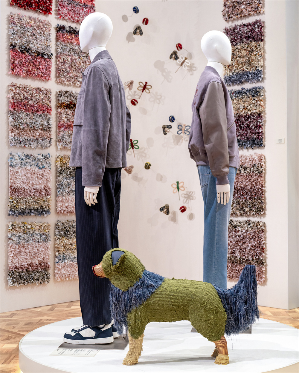 同時,迪奧工坊的面料余料與經升級再造的奢美材質也被賦予了新的生命,化作生動俏皮的野生小動物,被帶到此次進博會上:諸多能工巧匠以手工剪裁與縫制技藝,精心打造出小狗、蜜 蜂、松鼠等靈動造型。大自然的靈感與匠心工藝在此交匯,巧妙呼應迪奧對可持續理念的詩意詮釋。