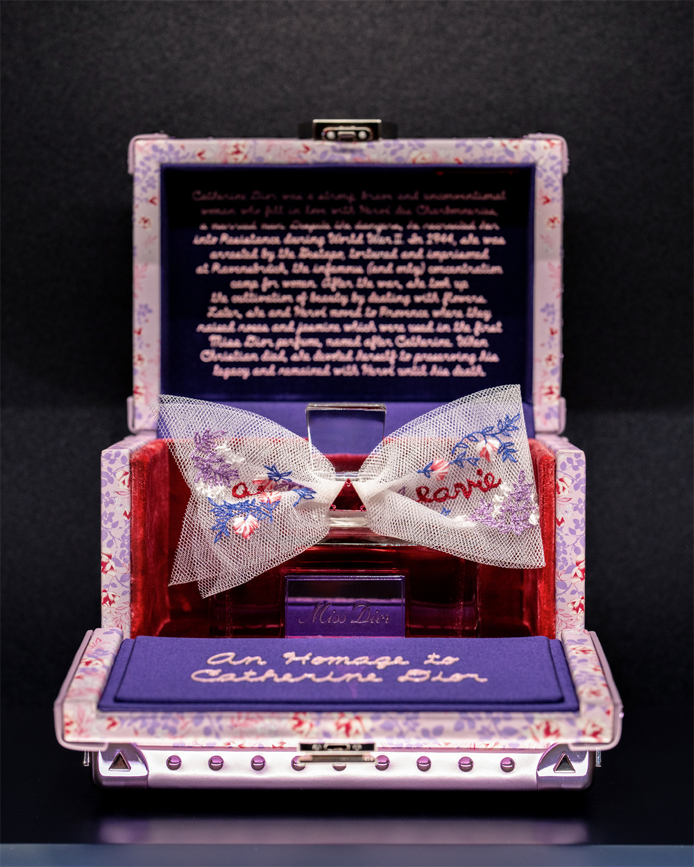 最后,在本屆進博會中,還特設了一座“LVMH 迷你博物館”,集中呈現集團旗下品牌的經典佳作與創新匠藝。迪奧于此呈獻兩款代表作品。其一為中國藝術家鞠婷賦新演繹的經典 LADY DIOR 手袋,該作品靈感源自動態藝術的表現原理,由起伏波動的面板構成,營造出動感十足的律動效果與視覺錯覺,專為2025年度的“DIOR LADY ART #10”藝術家限量合作系列打造;另一件為美國藝術家朱迪?芝加哥(JUDY CHICAGO)為迪奧小姐香水創作的香氛收藏箱, 箱體飾以繁花圖案與春意色彩,致敬迪奧先生的妹妹、迪奧小姐香水的永恒繆斯卡特琳娜?迪 奧(CATHERINE DIOR)。