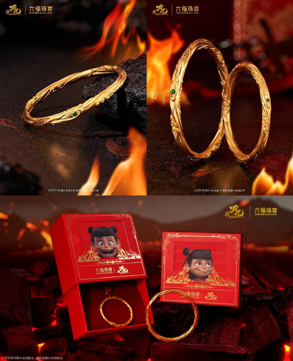 繼2020年國民珠寶品牌六福珠寶與影視IP電影「哪吒之魔童降世」成功合作,時隔五年兩者再度攜手,推出火爆全球的國漫電影「哪吒之魔童鬧?!瓜盗挟a品,續寫“金”彩華章。此次再度與IP「哪吒」的聯合,不僅是六福珠寶深耕中國傳統文化和品牌年輕化的又一次出擊,也是情感價值與精神內核的契合與創新,為珠寶設計提供無限靈感。電影「哪吒之魔童鬧?!瓜盗醒永m影片中的經典元素,將具代表性的乾坤圈、風火輪、混元珠等,采用傳統古法制金工藝與硬足金鎏彩技術,匠心打造成多款璀璨生輝、福寓滿滿的足金首飾,“破次元”的巧妙融合,為矜貴的金飾情感賦能。