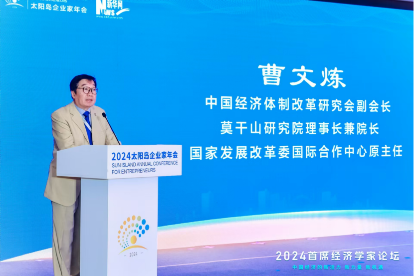 中國經濟體制改革研究會副會長、莫干山研究院理事長兼院長、國家發展改革委國際合作中心原主任曹文煉作主題演講。新華網發