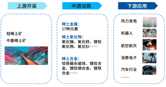 從產業鏈上看,上游主要是從稀土礦山中勘探、開采出稀土原礦;